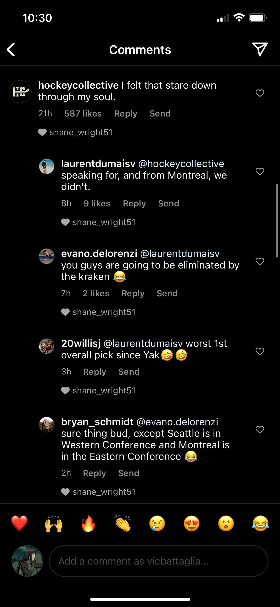 Wright also liked a viral Instagram post that talked about him giving a death stare to Montreal. Furthermore, Wright even liked an Instagram comment calling Slafkovsky the worst first overall draft pick since Nail Yakupov.